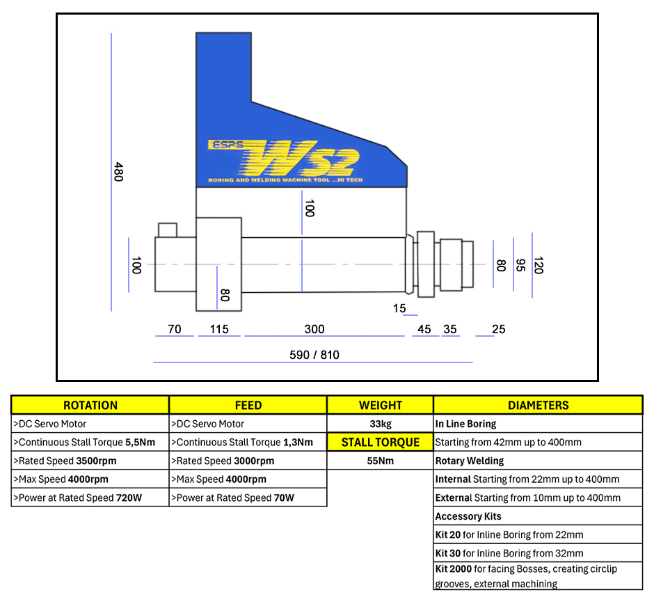Μηχάνημα-φορητός τόρνος (boring) νέου τύπου WS2 του οίκου SIR MECCANICA, για την αναγόμωση (συγκόλληση) και τορνίρισμα εσωτερικά σε τρύπες. Επαναφέρει στις αρχικές διαστάσεις φθαρμένες τρύπες αρθρώσεων σε χωματουργικά μηχανήματα κλπ.