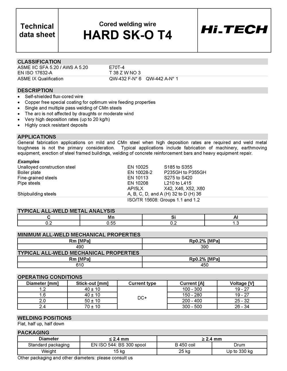 Σύρμα MIG/MAG  SK-O Τ4 του οίκου Hi-Tech