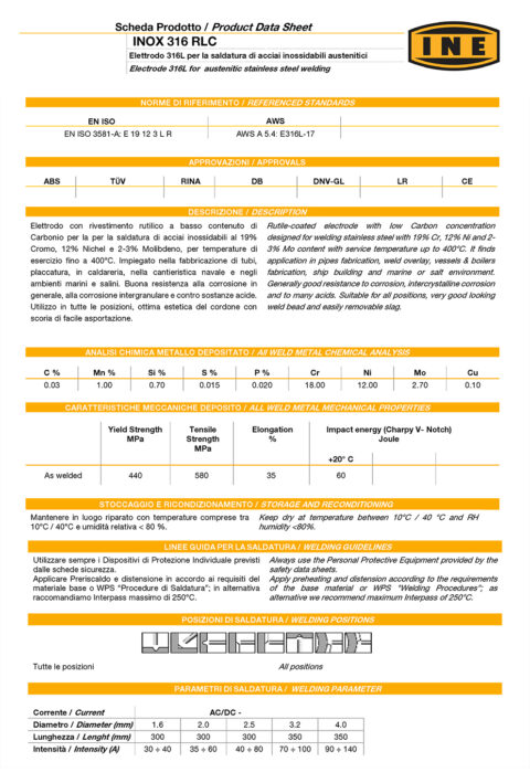 Ηλεκτρόδια ανοξείδωτα INE 316L του οίκου INE