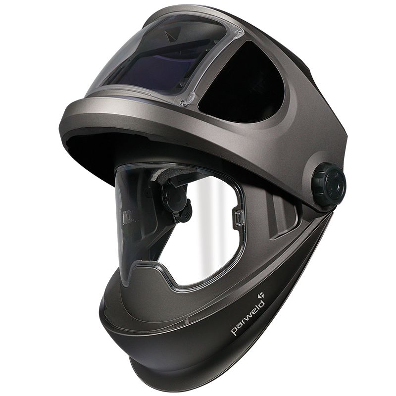 Μάσκα Ηλεκτροσυγκόλλησης Αυτόματη XR943A του οίκου Parweld με πλήρες σύστημα φιλτραρίσματος αέρα (PAPR). Mε το Ρ3 φίλτρο σωματιδίων και το φίλτρο οσμών άνθρακα που χρησιμοποιεί διευκολύνει τον χρήστη να λαμβάνει την απαραίτητη ποσότητα οξυγόνου καταβάλοντας την μικρότρη δυνατή προσπάθεια. Το ηλεκτρονικό σύστημα που διαχειρίζεται την ροή του αέρα εγγυάται την ιδανική λειτουργία σε όλες τις συνθήκες. Ο χρόνος χρήσης με πλήρως φορτισμένες τις μπαταρίες ανέρχεται σε περισσότερες απο 11 ώρες σε low και 9 ωρες σε high settings. Διαθέτει προειδοποιητικά led, δόνηση και ηχητικά σήματα σε περιπτώσεις χαμηλής στάθμης μπαταρίας, μπουκωμένου φίλτρου και χαμηλής ροής αέρα. Διαθέτει επίσης ιμάντες ώμου και ρυθμιζόμενο κεφαλόδεσμο για καλύτερη κατανομή βάρους. Είναι Flip up, με True Colour φίλτρο αυτόματης σκίασης (ADF) και ενσωματωμένες ηλιακές κυψέλες για μεγαλύτερη διάρκεια ζωής της μπαταρίας.