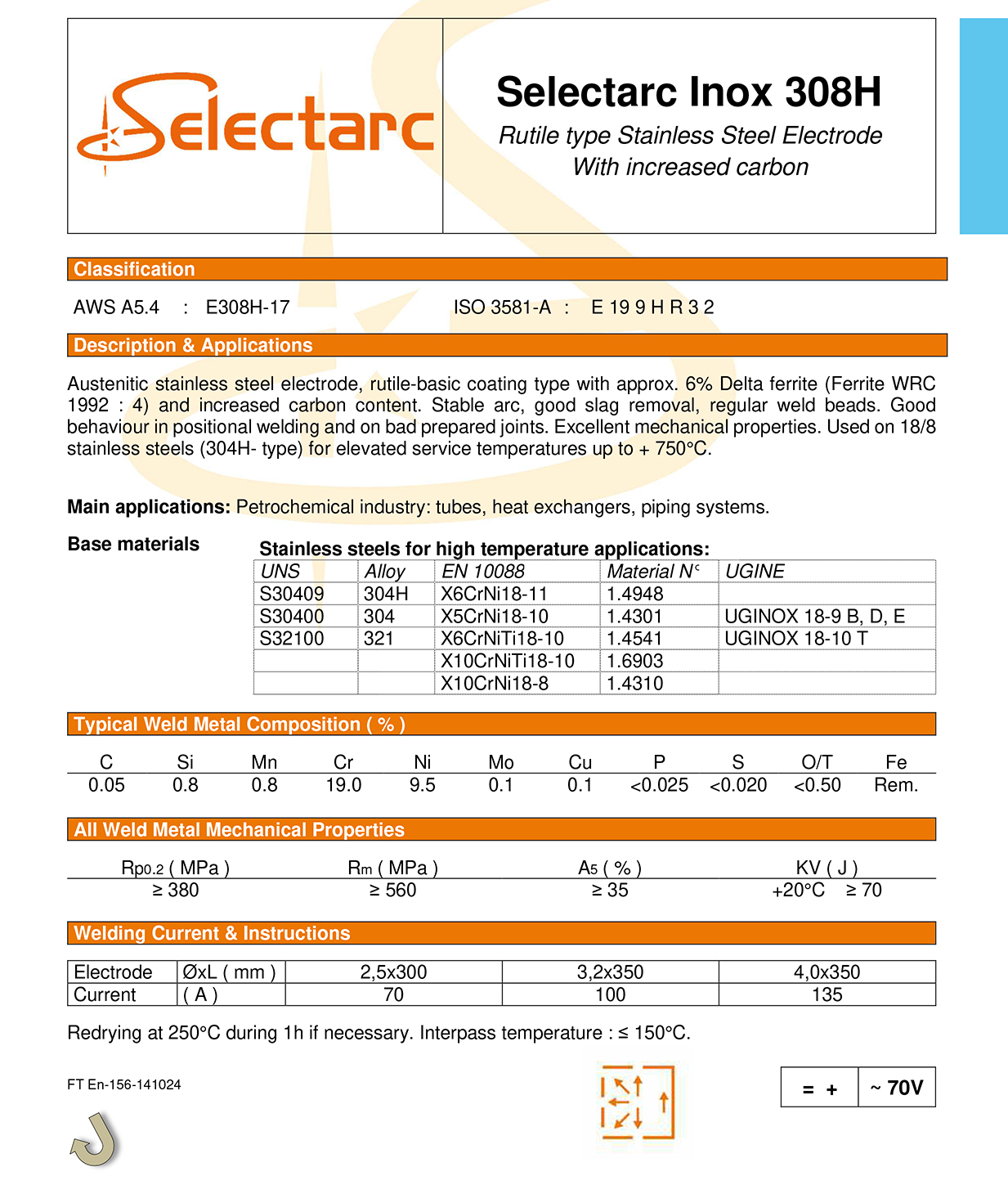 Ηλεκτρόδια Ανοξείδωτα 308H του οίκου Selectarc
