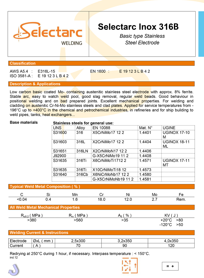 Ηλεκτρόδια Ανοξείδωτα 316Β του οίκου Selectarc